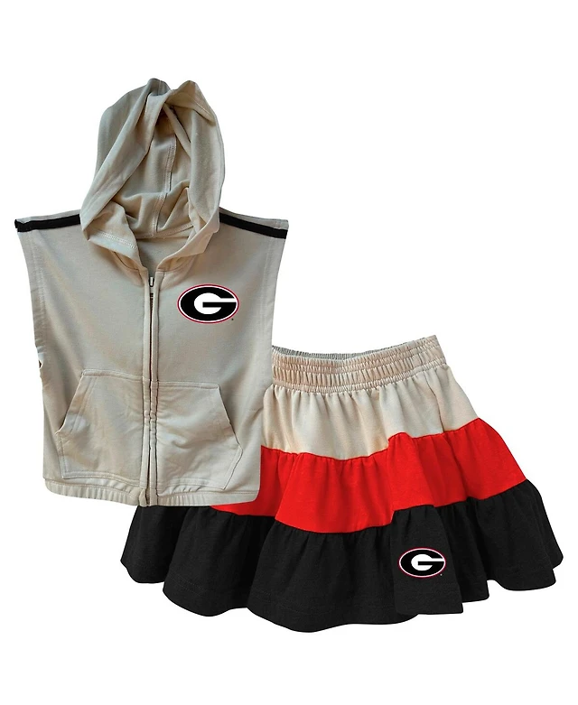 Wes & Willy Girls Toddler 2-Piece Tan/Navy Notre Dame Fighting Irish Tri-Blend Sleeveless Full-Zip Hoodie and Tiered Skirt Set