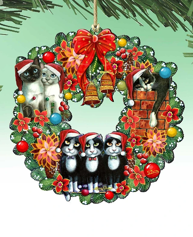 Designocracy Cats Wreath Holiday Ornaments, Set of 2