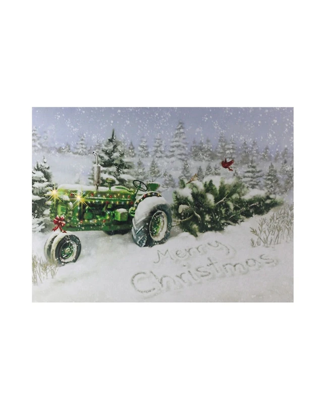 Northlight Fiber Optic and Led Lighted Merry Christmas Tractor Canvas Wall Art 12" x 15.75"