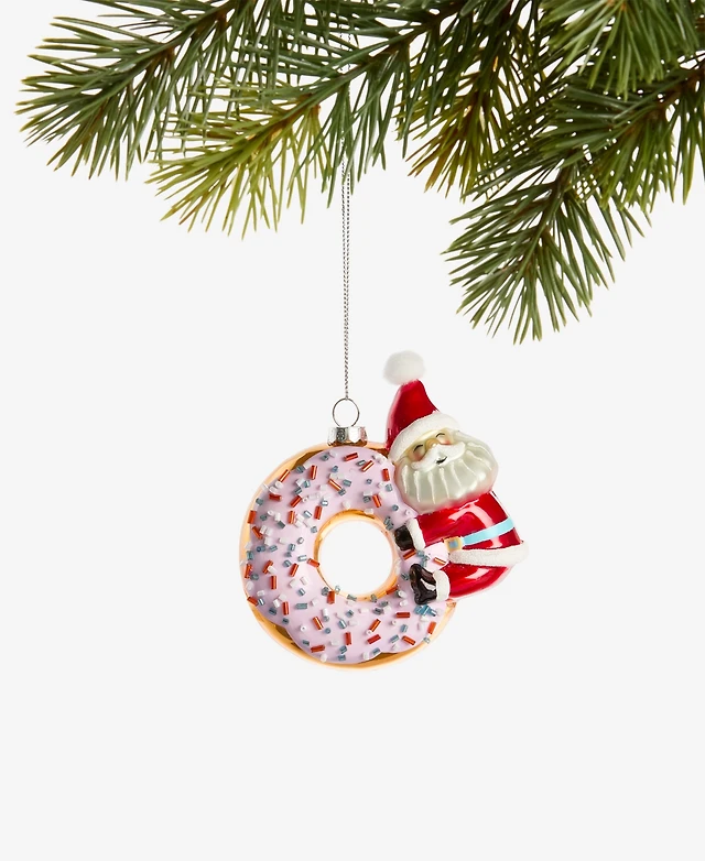 Holiday Lane Sugar Plum Glass Santa Donut Ornament, Macy's Exclusive