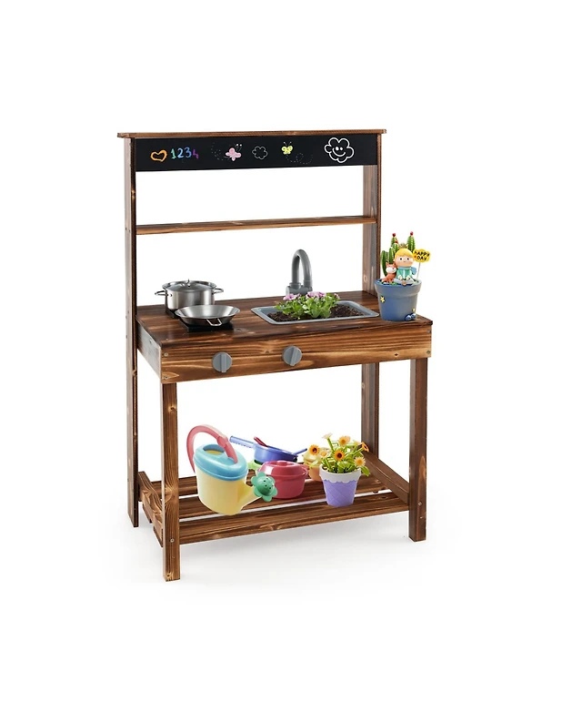 Cesicia Kids Kitchen Playset Pretend Play Toy Kitchen with Play Phone, Chalkboard, Towel Rack, Ice Maker, 5 Accessories, Storage Space