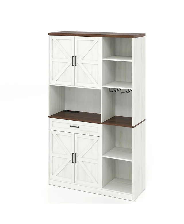 gaomon Tall Kitchen Pantry Cabinet, Kitchen Storage Cabinet with Led Lights and Power Outlets, Food Pantry Cabinet with Microwave Stand, Glass Door, A