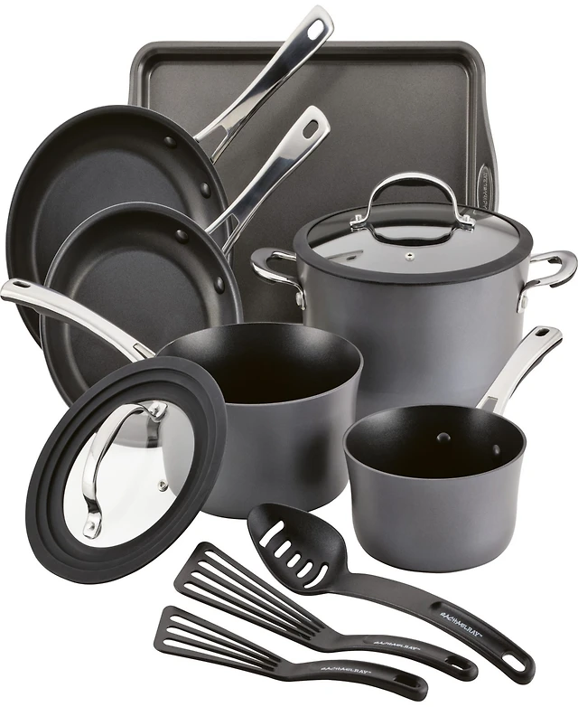 Rachael Ray Classic Brights Hard Enamel Aluminum Nonstick Cookware Set, 14-Piece