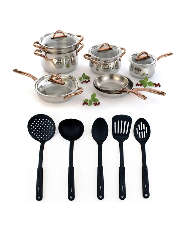 BergHOFF Ouro Gold 10Pc 18/10 Stainless Steel Cookware Set, Ss Lids, Rose Gold Handles