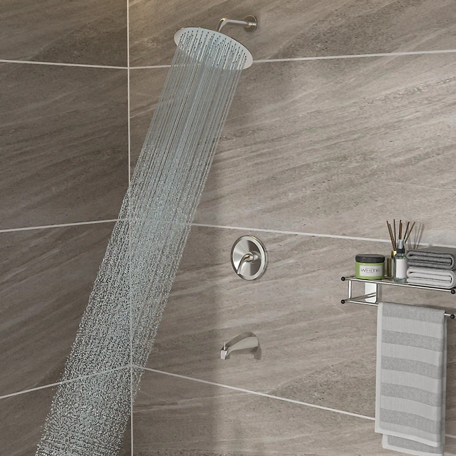 10" Rain Shower Head Systems With Waterfall Tub Spout, Brushed Nickel, Wall Mounted Shower