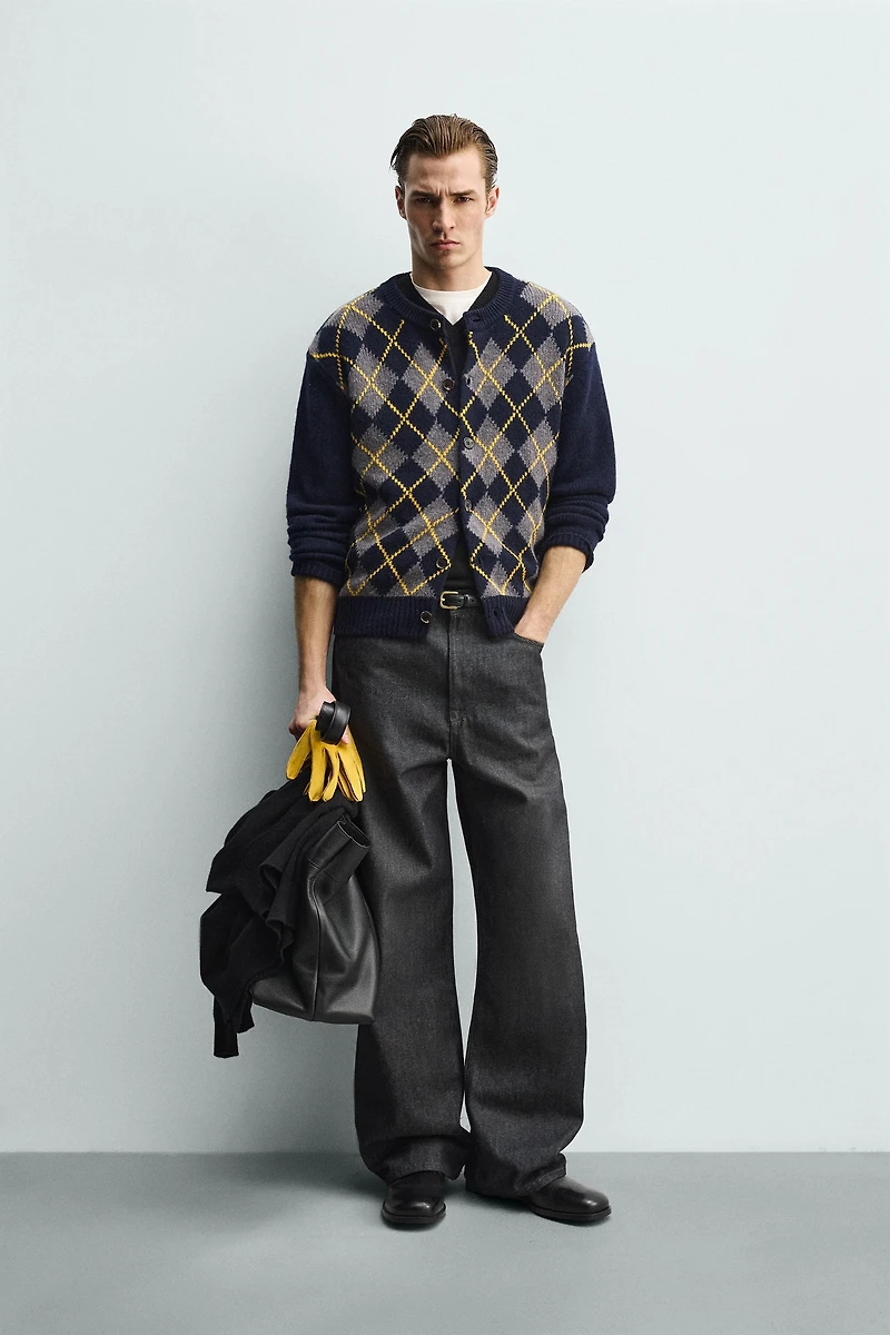 100% WOOL DIAMOND PATTERN CARDIGAN