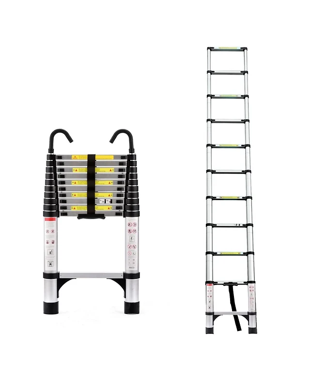 10.5ft (about 3.2m) retractable ladder, multi-functional foldable ladder, with hook, aluminum retractable ladder, suitable for daily use of Rv, attic,