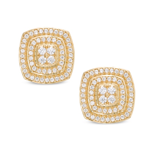 3/4 CT. T.w. Cushion-Shaped Multi-Diamond Frame Stud Earrings in 10K Gold