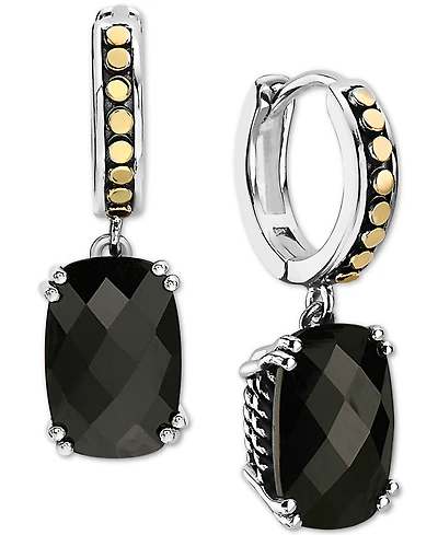 Effy Onyx Dangle Hoop Drop Earrings in Sterling Silver & 18k Gold