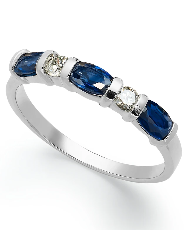 14k White Gold Sapphire (1/3 ct. t.w.) and Diamond (1/5 ct. t.w.) Alternating Ring