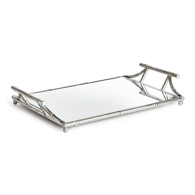 15.36" x 22.45" Daphne Mirrored Premium Silver Decorative Table Tabletop Tray w/ Raised Handles