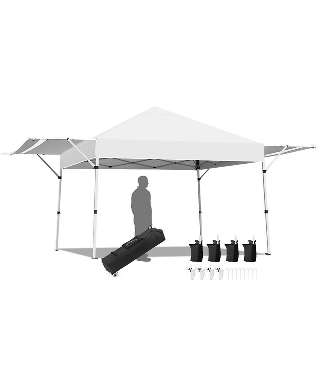 17 x 10 Feet Foldable Pop Up Canopy with Adjustable Dual Awnings