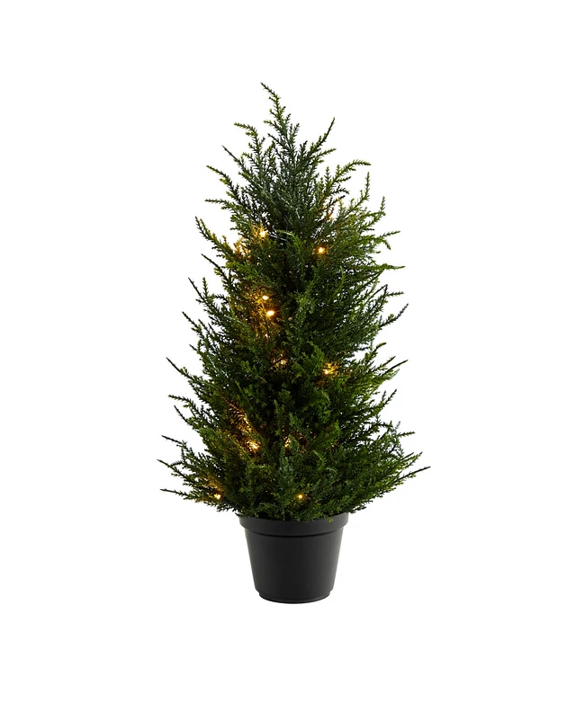 18" Cedar Artificial Tree with Led Lights Uv Resistant Indoor/Outdoor