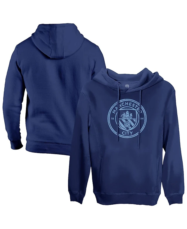 1863FC Men's Navy Manchester City Mono Badge Fleece Pullover Hoodie