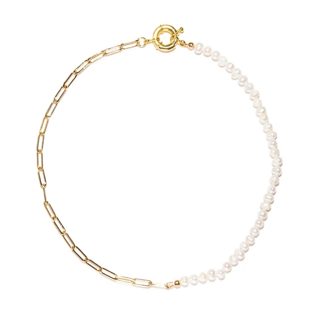 18K Gold Plated Paper Clip Chain with Freshwater Pearls - Lily Necklace 16" For Women