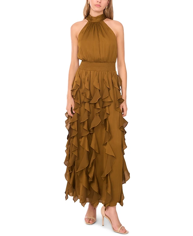 1.state Women's Flounce Cascading Halter Maxi Dress