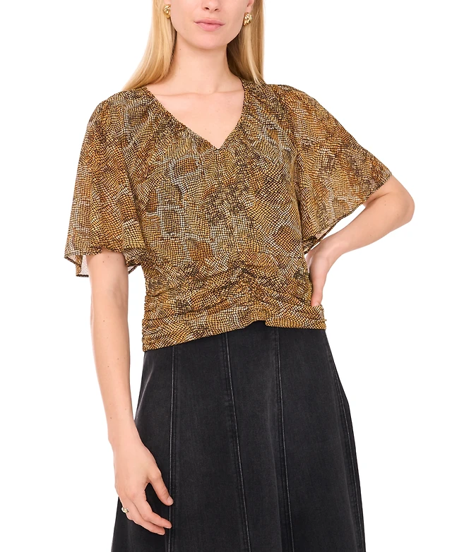 1.state Women's Flutter Center Front V-Neck Shirring Shirt