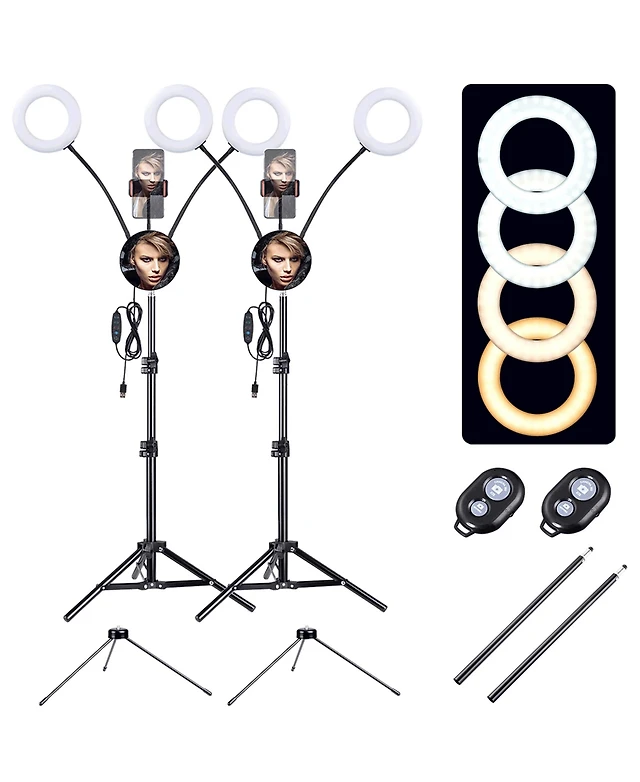 2 Pack 7" Dual Led Ring Light Dimmable Stand Phone Holder Makeup Selfie Vlog