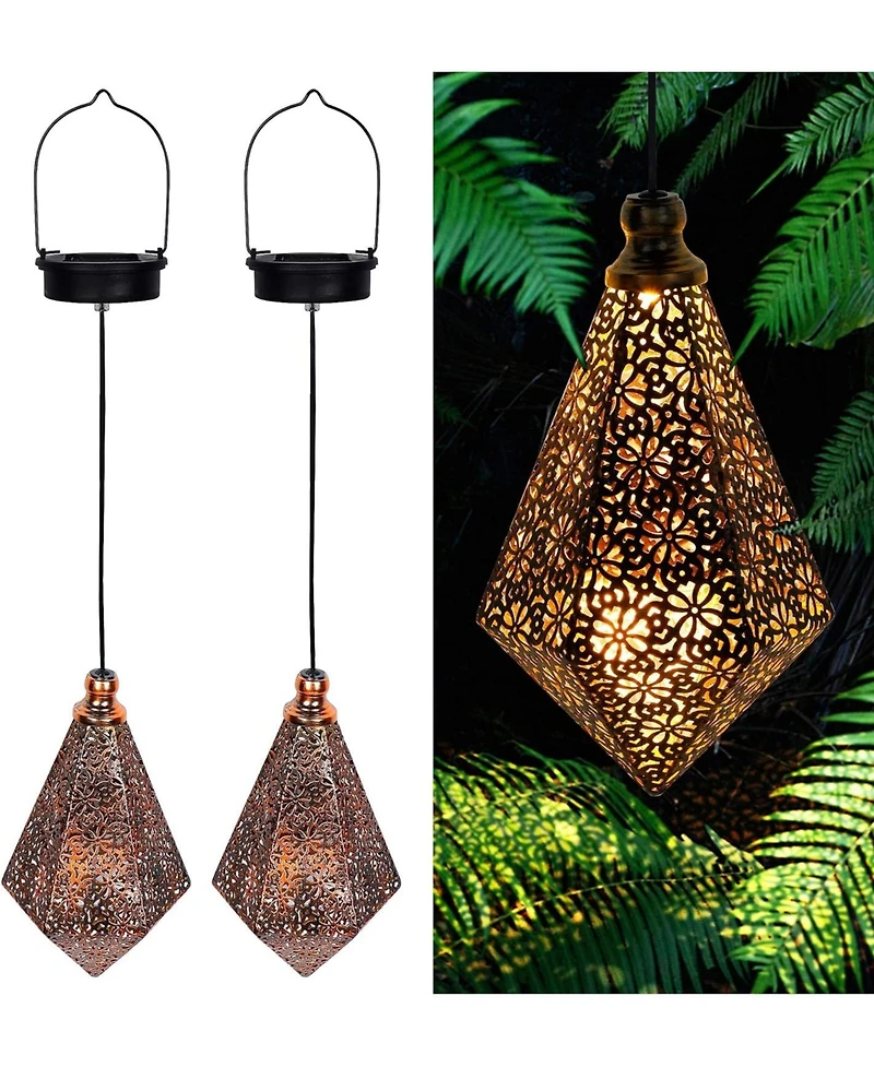 2-Pack Solar Hanging Lantern Lights Waterproof Garden Decor - Warm white