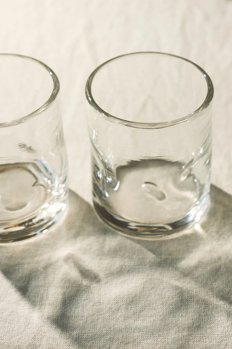 Tumblers in thick glass with a subtly irregular shape and softly rounded edges. Capacity 10 fl. oz.