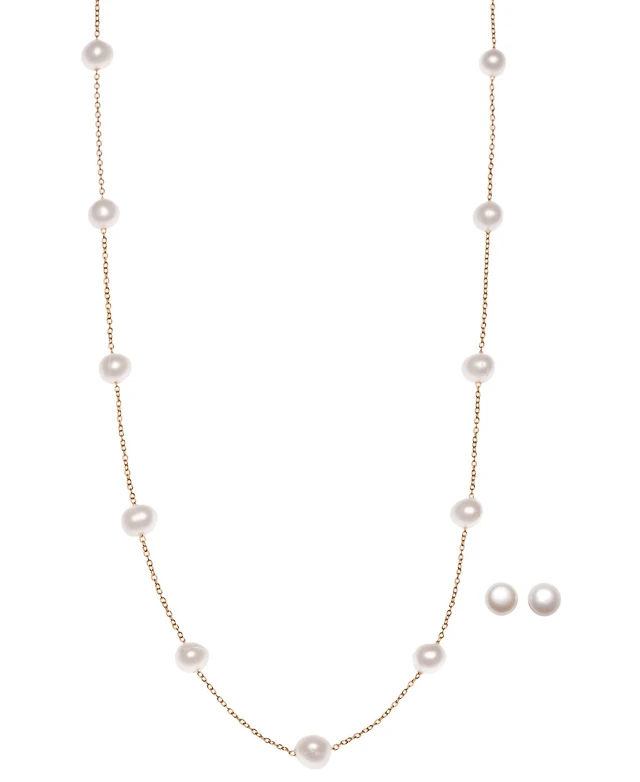 2-Pc. Set Cultured Freshwater Pearl (7 x 9mm) Lariat Necklace & Drop Earrings in Sterling Silver