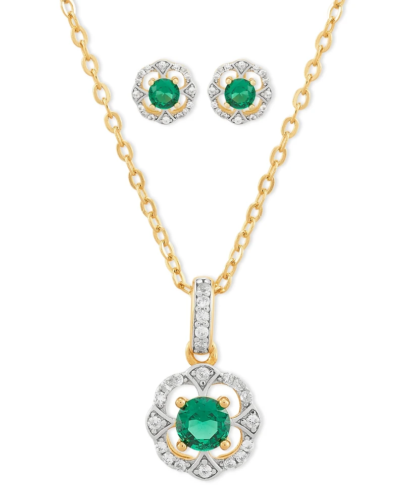2-Pc. Set Lab Created Emerald (7/8 ct. t.w.) & Lab Created White Sapphire (1/3 ct. t.w.) Vintage Inspired Halo Pendant Necklace & Matching Stud Earrin