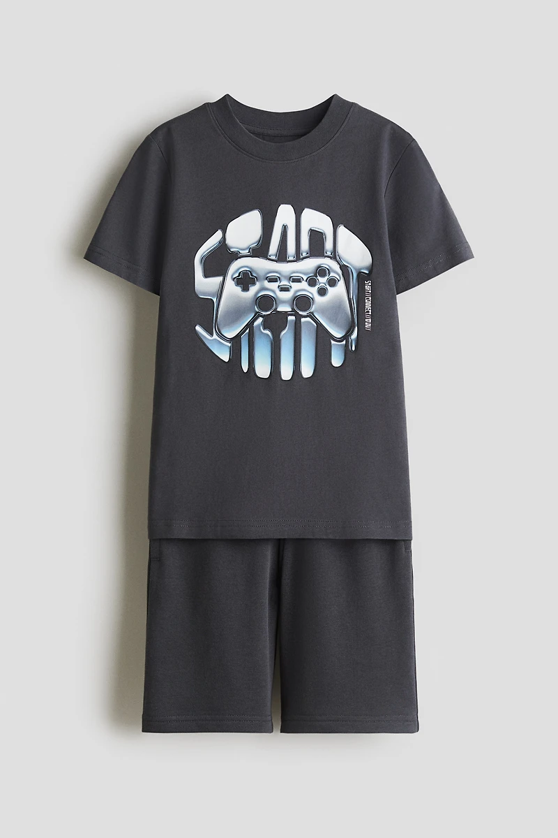 Set with a T-shirt in soft cotton jersey and sweatshorts in lightweight fabric. T-shirt with a printed motif at front and round, ribbed neck. Sweatshorts with an elasticized drawstring waistband and discreet side pockets.
