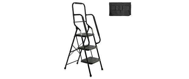 5-Step Steel Folding Step Stool Ladder with Wide Anti Slip Pedal and Safety Handle, Black