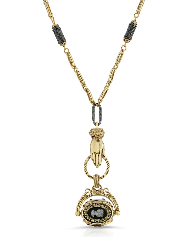 2028 Carnelian Oval Cameo with Faux Imitation Pearls Necklace
