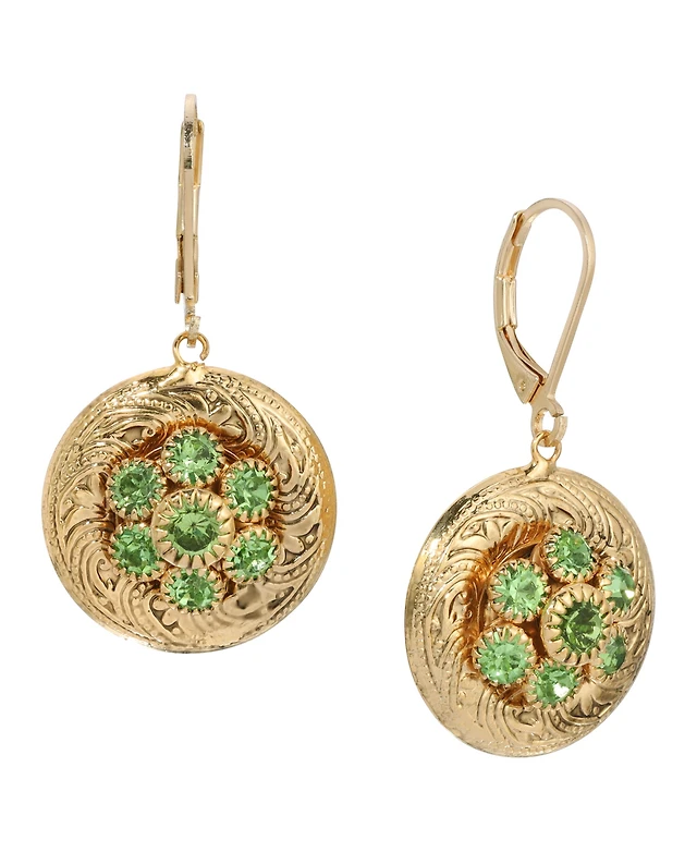 2028 Gold-Tone Crystal Round Drop Earrings