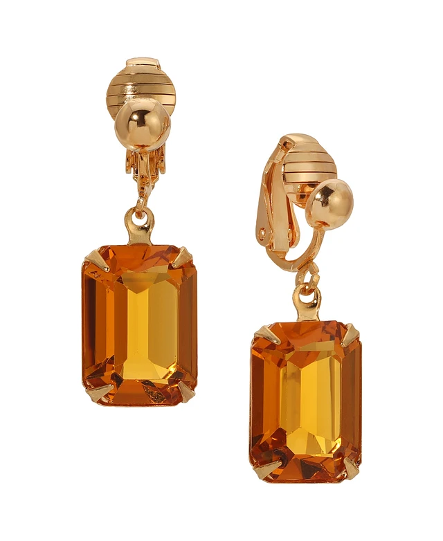 2028 Topaz Crystal Rectangular Drop Clip Earrings