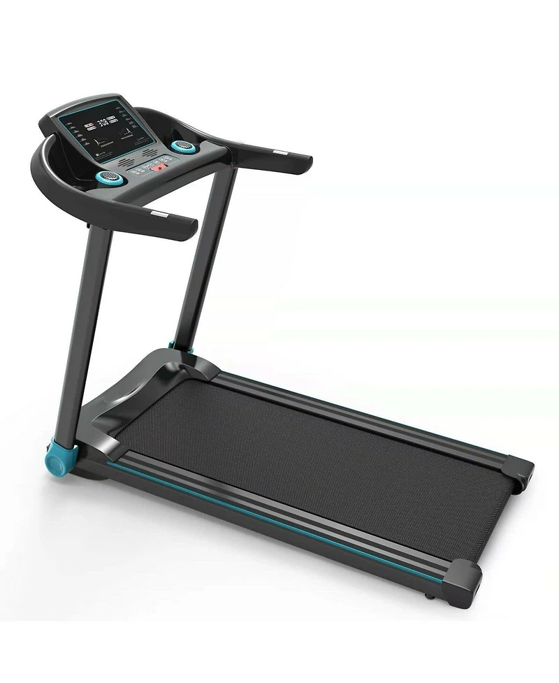 Stay fit with this 2.25 Hp electric treadmill, featuring 12 preset programs and adjustable speeds from 0.6 to 7.5 mph. Track your real-time fitness data with the precise pulse sensor and Led screen. The quiet, powerful motor is perfect for home use, and Bluetooth connectivity adds convenience. Adjustable footpads and transportation wheels ensure stability and easy movement.