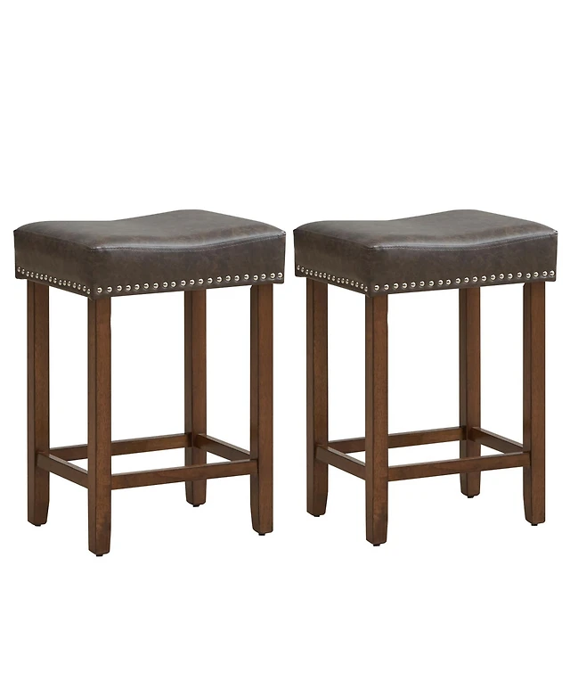 Gymax Set of 2 Nailhead Saddle Bar Stools 29'' Pub Chairs with Rubber Wood Legs