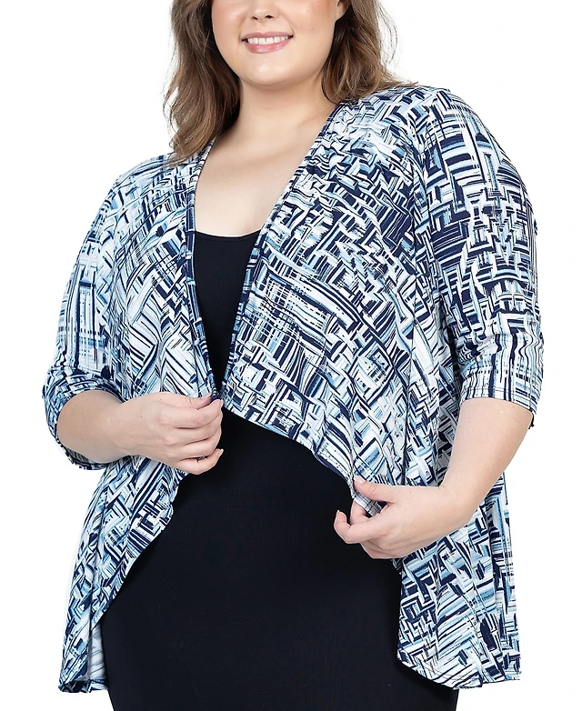 24Seven Comfort Apparel Elbow Length Sleeve Plus Open Cardigan