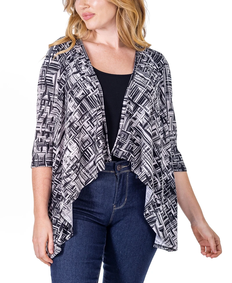 24seven Comfort Apparel Print Elbow Length Sleeve Open Cardigan in Bloomington, MN