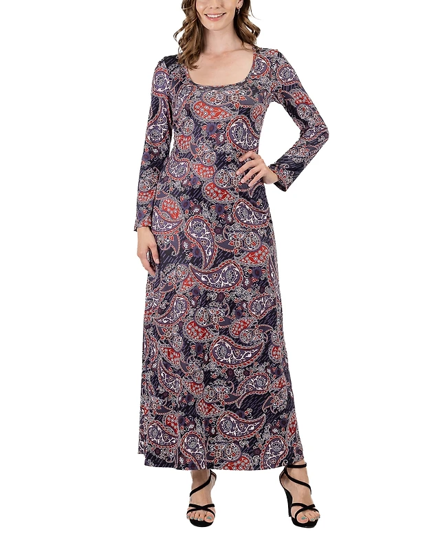 24seven Comfort Apparel Women's Long Sleeve Paisley A-Line Maxi Dress