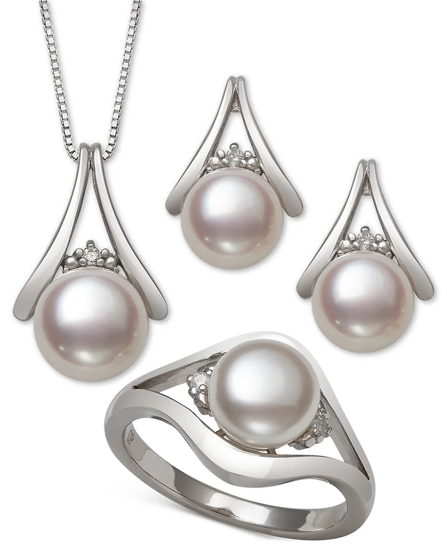 3-Pc. Set Cultured Freshwater Pearl (7 & 8mm) Pendant Necklace, Stud Earrings & Ring in Sterling Silver