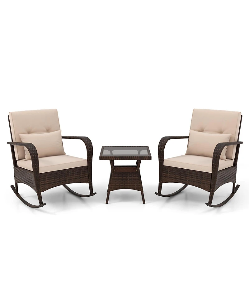 3 Piece Outdoor Rocking Set with Tempered Glass Table for Backyard Poolside