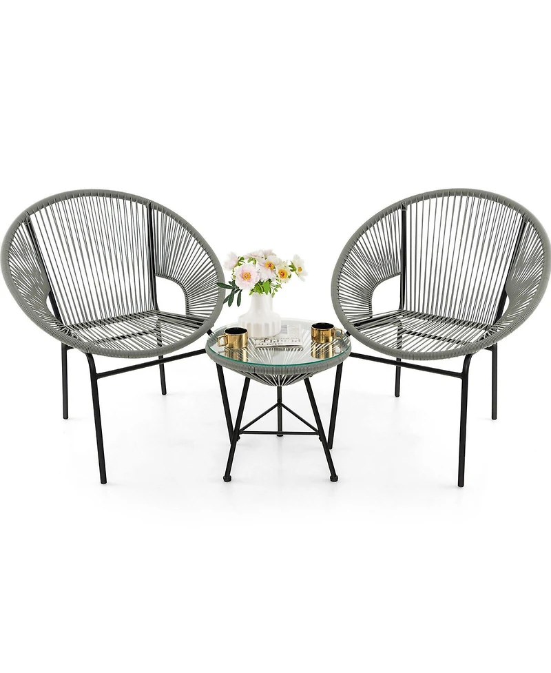 3 Pieces Patio Acapulco Furniture Bistro Set with Glass Table