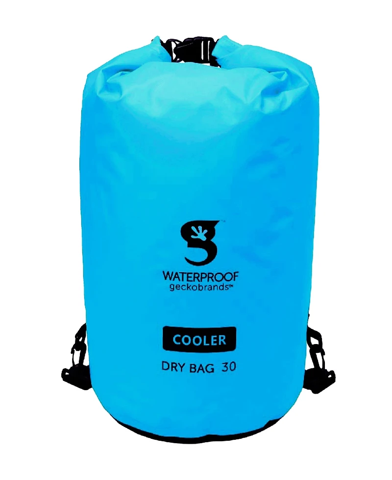 The Geckobrands dry bag cooler is made of durable material. This convenient cooler features a roll-top closure and an insulated, leak-resistant main compartment that holds up to 24 cans or 18 bottles and ice up to 72 plus hours. Use the adjustable straps to secure it on your back and go hands-free.