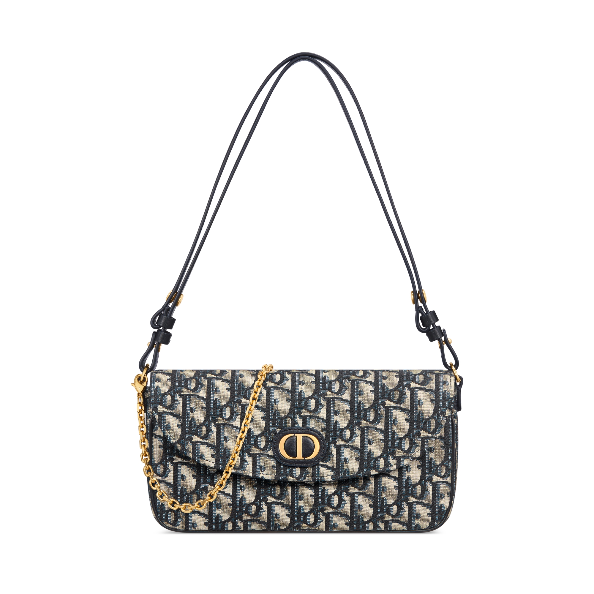 New for Winter 2025, the 30 Montaigne D-Vine pouch with chain is a practical and elegant design. Crafted in blue Dior Oblique jacquard, it features a half-moon flap embellished with a gold-finish metal CD signature, and offers a compartment to hold all the essentials. Equipped with a removable and adjustable leather strap as well as a removable chain, the versatile daily pouch allows for effortless switching between shoulder or crossbody styling. Main composition: cotton, calfskin and technical fabric. Calfskin and technical fabric lining. CD signature on the front. Half-moon flap closure. Main compartment. Interior zip pocket. Interior slip pocket. Three card slots. Adjustable and removable leather strap. Chain with gold-finish metal links. Made in Italy