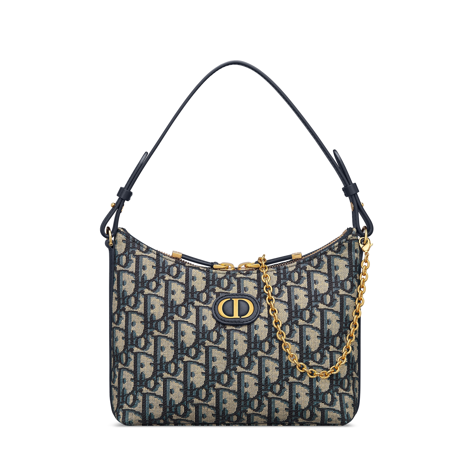 New for Winter 2025, the 30 Montaigne Diorling mini bag showcases a practical and modern design. Crafted in blue Dior Oblique jacquard, it is enhanced by a gold-finish metal CD signature on the front and features a zip compartment to hold all the essentials. Its versatile style has an adjustable, removable leather strap and top handle, as well as a removable chain, allowing it to be worn over the shoulder or crossbody as an ideal companion for day or evening. Main composition: cotton, calfskin and technical fabric. Cotton, linen and calfskin lining. CD signature on the front. Two-way zip closure with zipper pulls. Interior slip pocket. Adjustable and removable leather top handle. Adjustable and removable leather shoulder strap. Removable chain strap. Dust bag included. Made in Italy