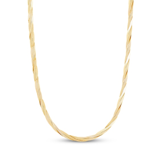 2.7mm Braided Herringbone Chain Necklace Solid 10K Yellow Gold 18"