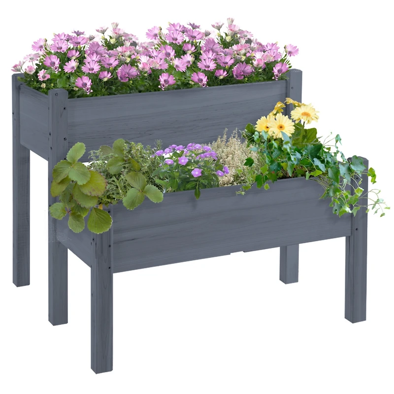 34"x34"x28" Raised Garden Bed, 2-Tier Elevated Wood Planter Box for Backyard, Patio to Grow Vegetables, Herbs, and Flowers, Gray