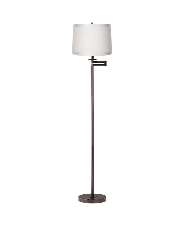 360 Lighting Modern Swing Arm Floor Lamp 60.5 Tall Self Trim Fabric Drum Shade for Living Room Reading Bedroom Office