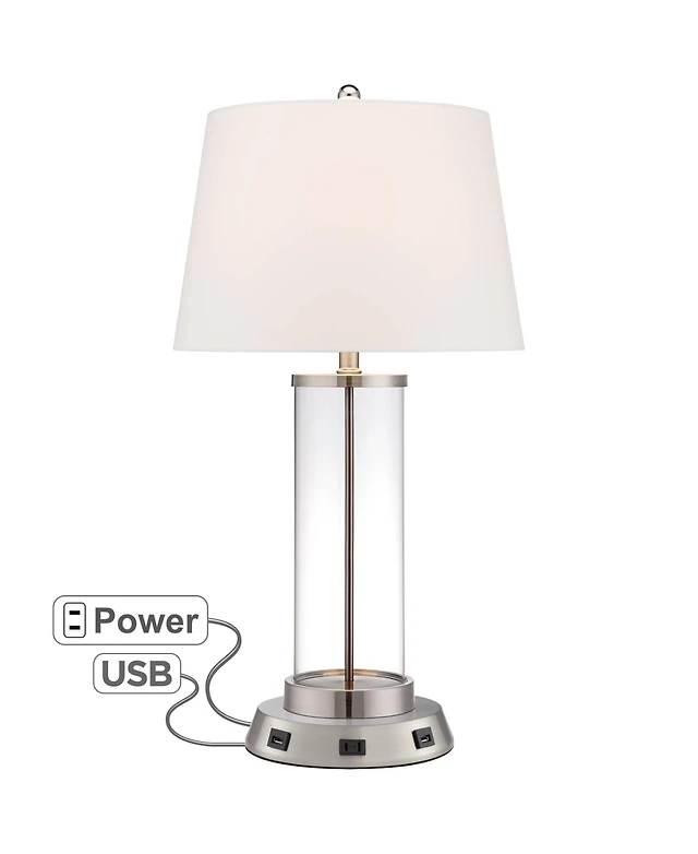 360 Lighting Modern Table Lamp with Usb and Ac Power Outlet Workstation Charging Base 26.25" High Fillable Clear Glass Drum Shade Living Room