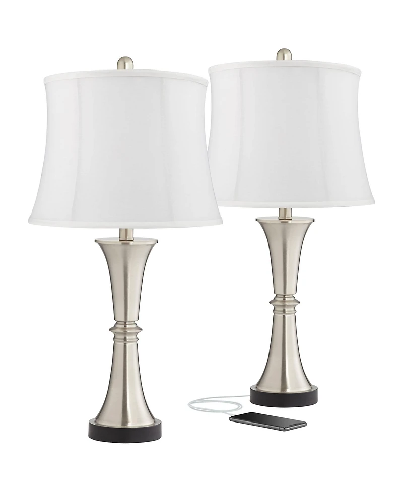 360 Lighting Seymore Modern Table Lamps 26" High Set of 2 Softback with Usb Charging Port Led Touch On Drum Shade for Bedroom Desk
