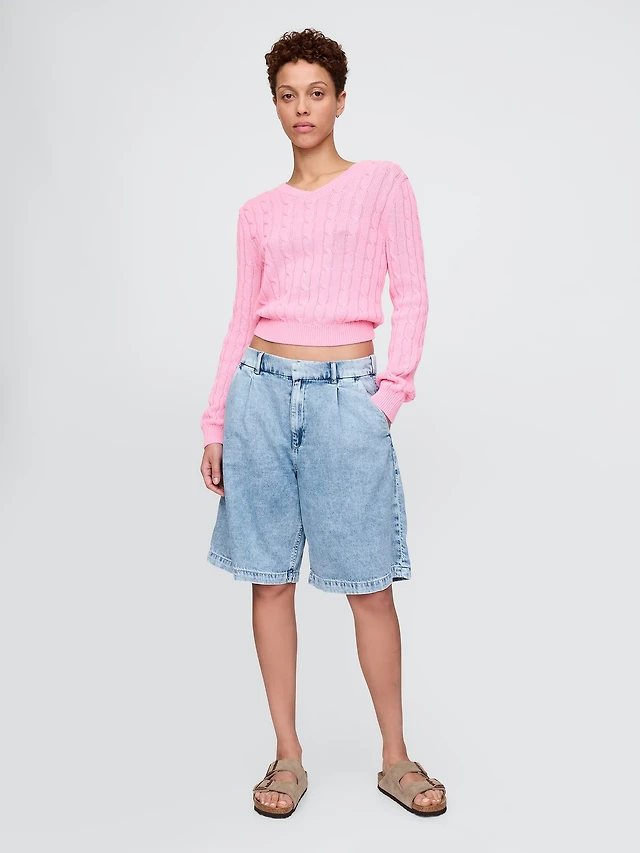 Lands' End Women's Soft Denim High Rise 7" Pleated Trouser Shorts