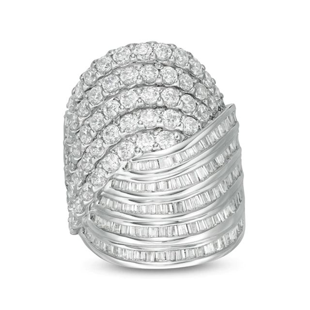 Baguette & Round-Cut Diamond Multi-Row Wave Crossover Ring 3 ct tw 10K White Gold