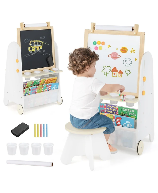 3-in-1 Double-sided Art Easel with Chalkboard and Magnetic Whiteboard